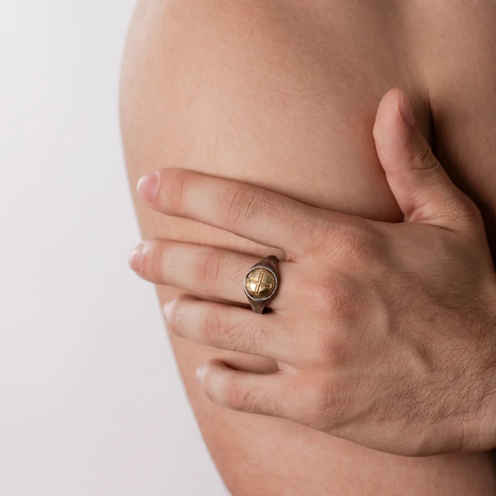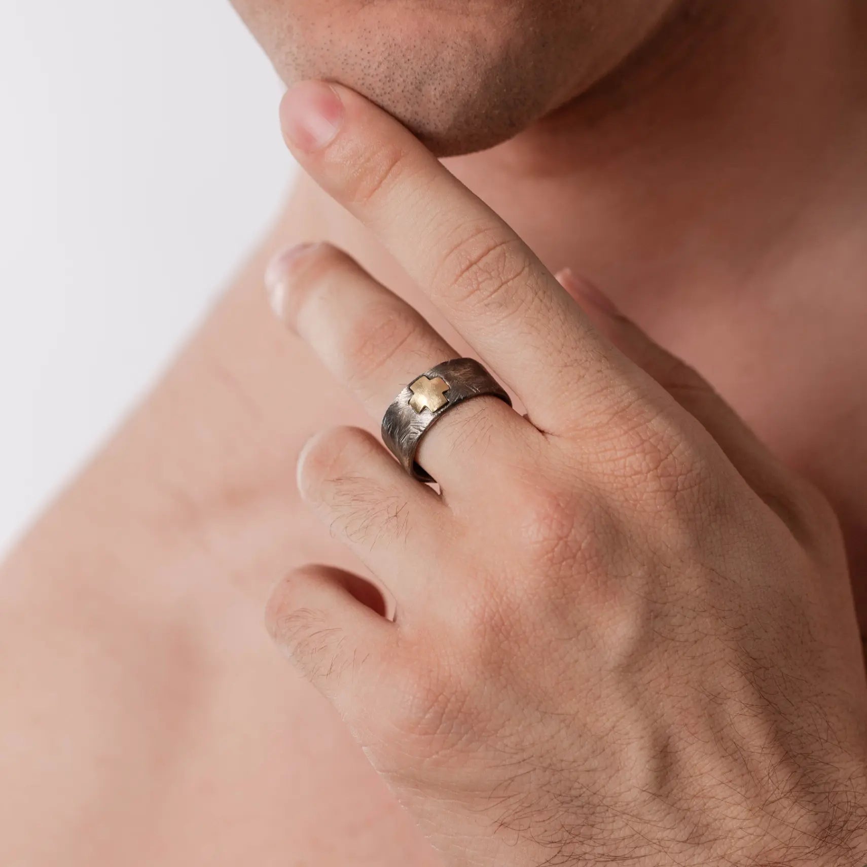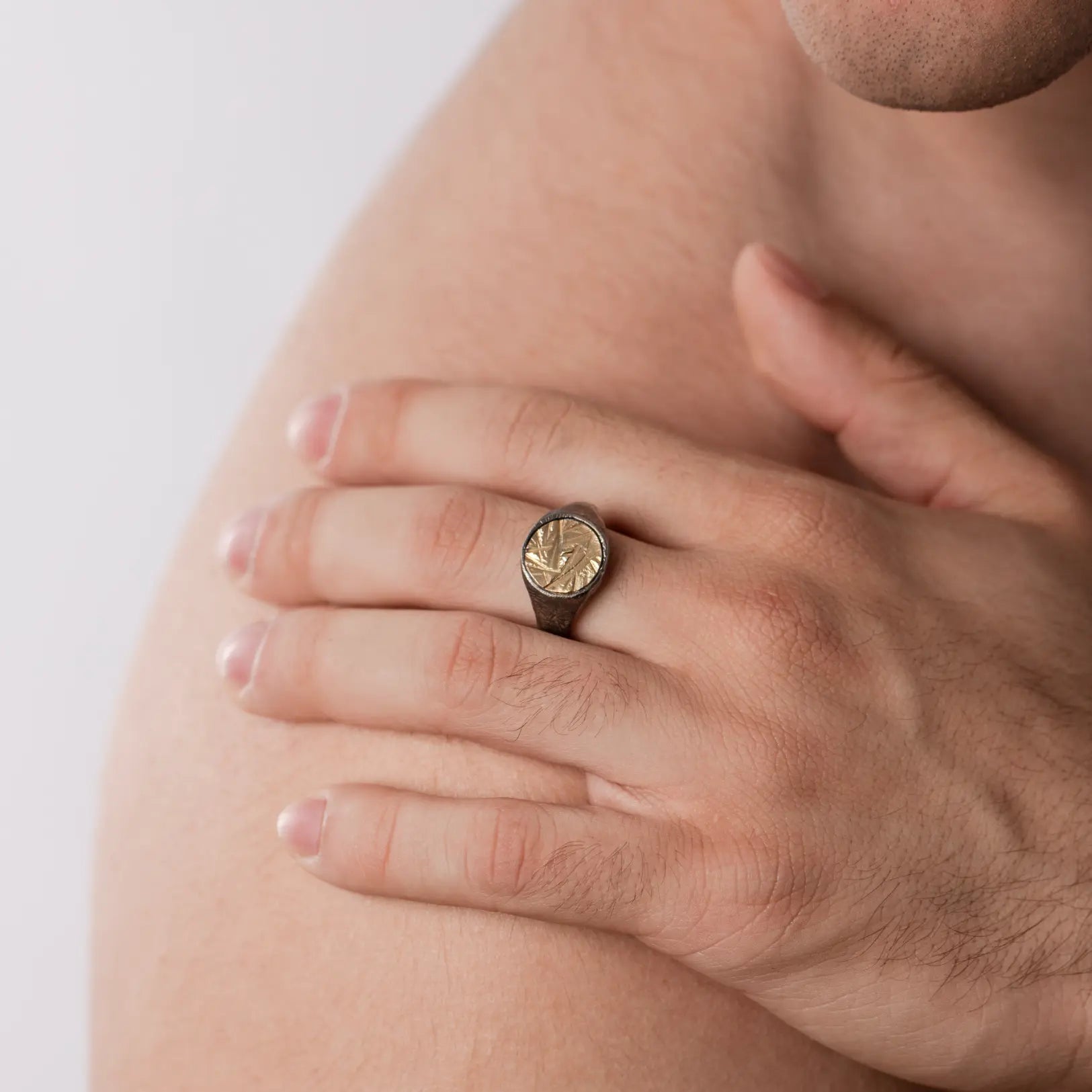 Smoky Quartz Ring Oxidized Silver 925 14K Gold