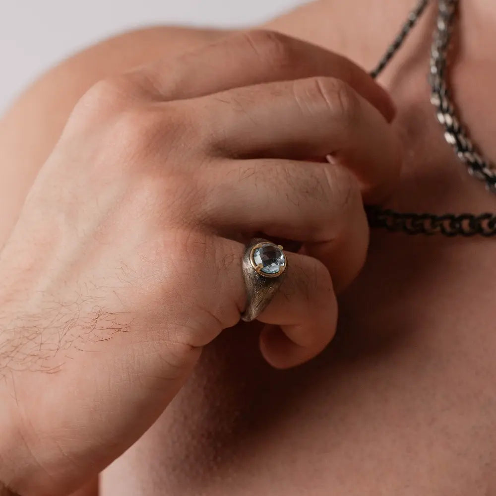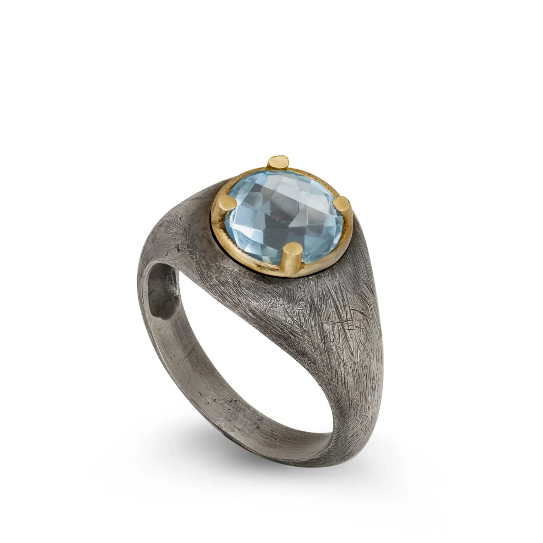 Blue Topaz Ring Oxidized Silver 925 14K Gold