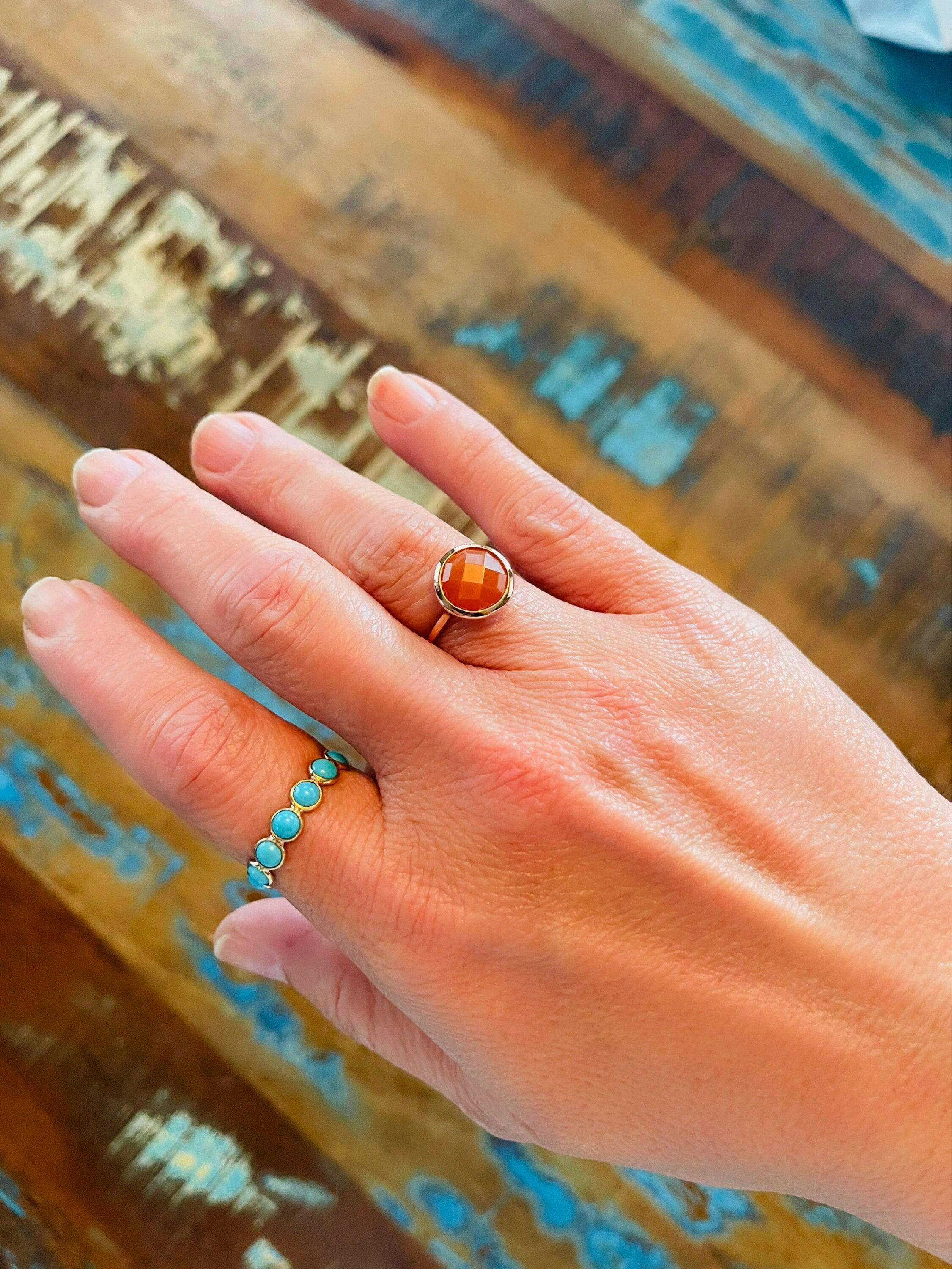 Orange Moonstone Ring 10mm in 14K Gold