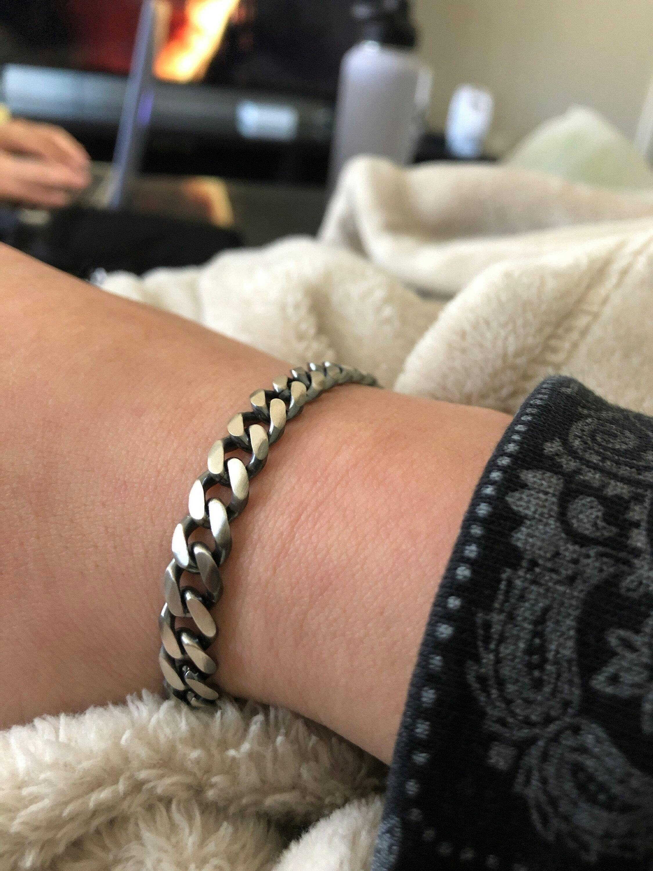 Unisex βραχιόλι με αλυσίδα gourmet, κατασκευασμένο από οξειδωμένο ασήμι 925, με ιδιαίτερο χειροποίητο κούμπωμα για ασφαλή εφαρμογή και κομψό αποτέλεσμα. Η αλυσίδα gourmet προσφέρει minimal αλλά εκλεπτυσμένη αισθητική, ιδανική για καθημερινή χρήση ή για layering με άλλα βραχιόλια.