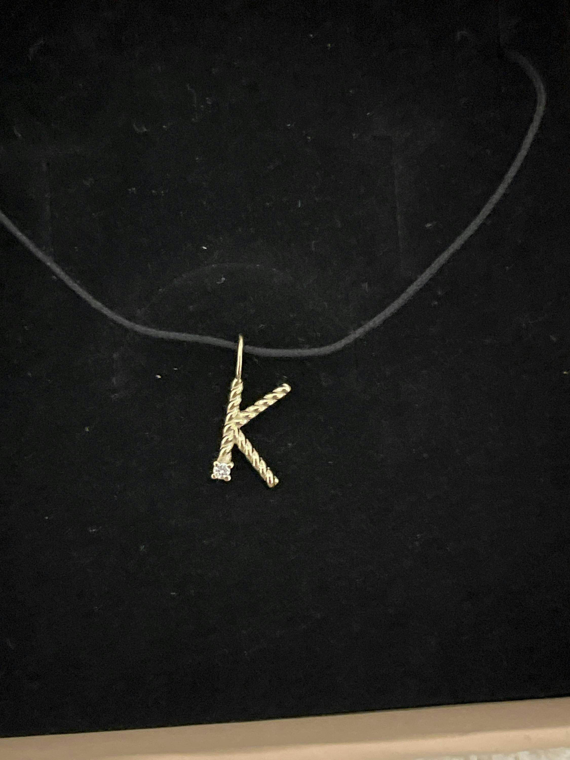 Ένα κομψό κολιέ με twisted μονόγραμμα και διαμάντι brilliant cut, κατασκευασμένο από χρυσό 14Κ, ροζ χρυσό 14Κ ή λευκόχρυσο 14Κ. Ιδανικό για προσωπικό δώρο ή καθημερινή πολυτελή χρήση.