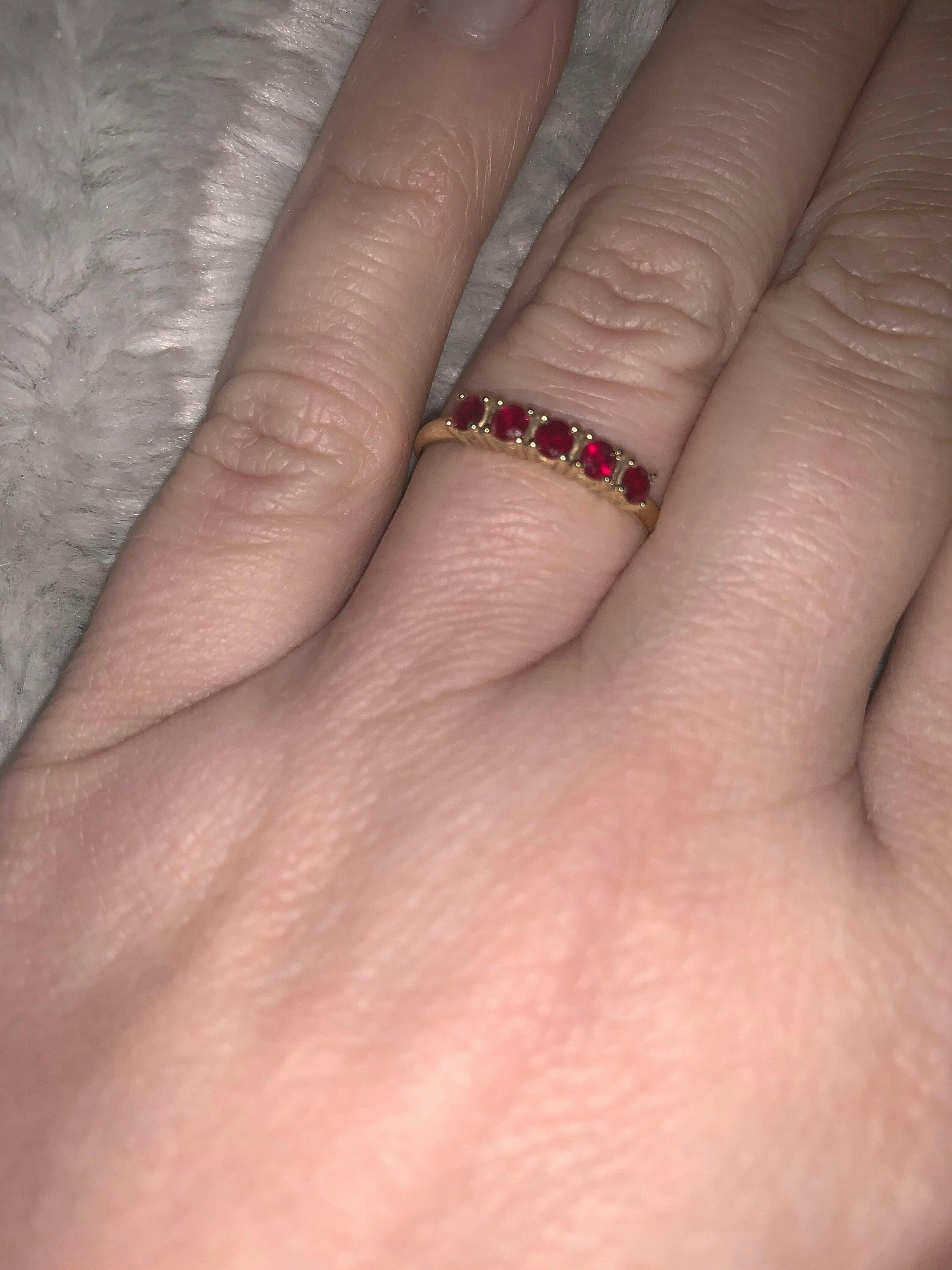 Ένα κομψό δαχτυλίδι με 5 ρουμπίνια σε round cut, κατασκευασμένο 100% χειροποίητα. Ιδανικό για δώρο επετείου ή για να προσθέσετε χρώμα και λάμψη στην καθημερινή σας εμφάνιση.