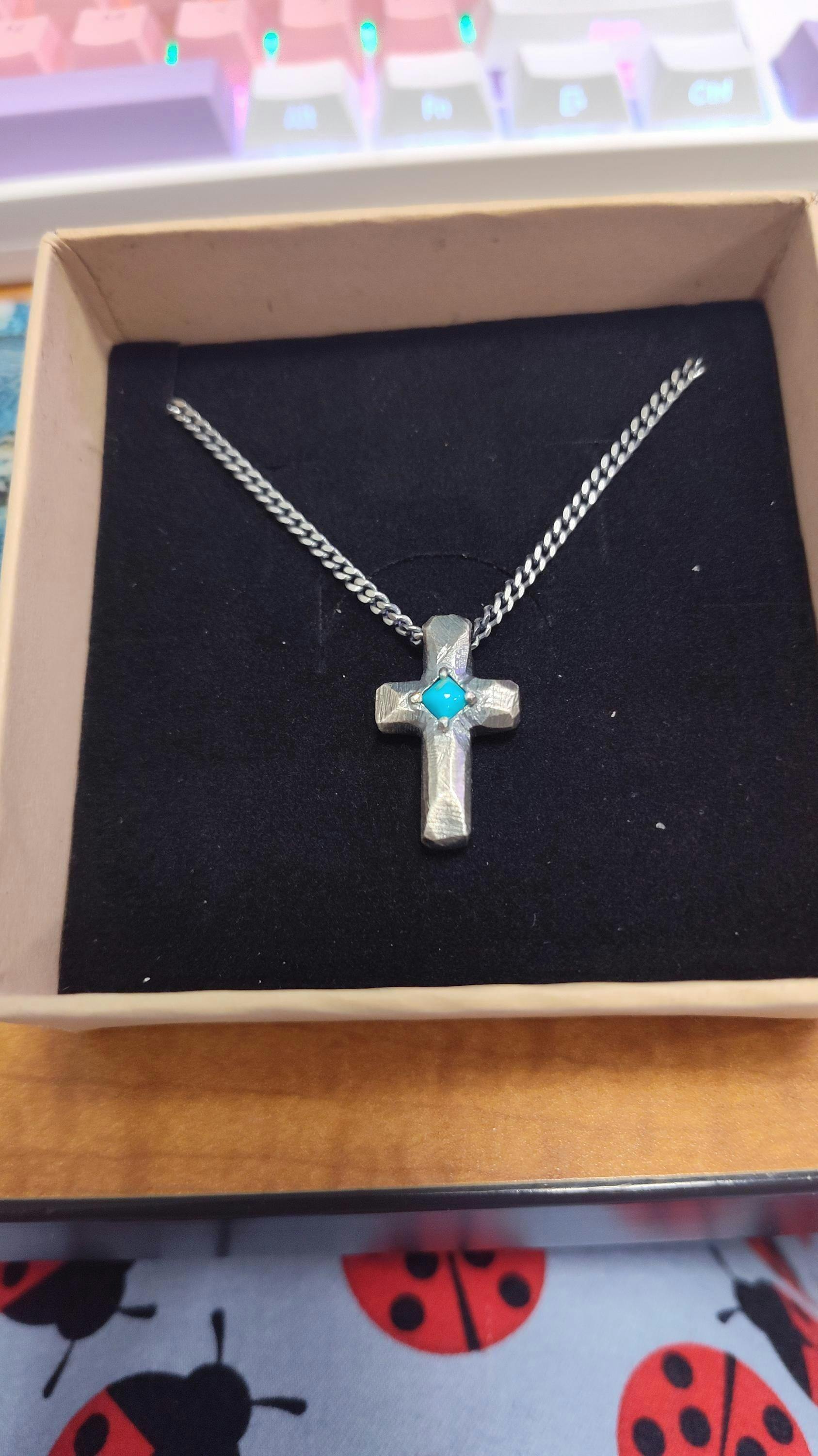 Κολιέ Σταυρός Οξειδωμένο Ασήμι Τυρκουάζ